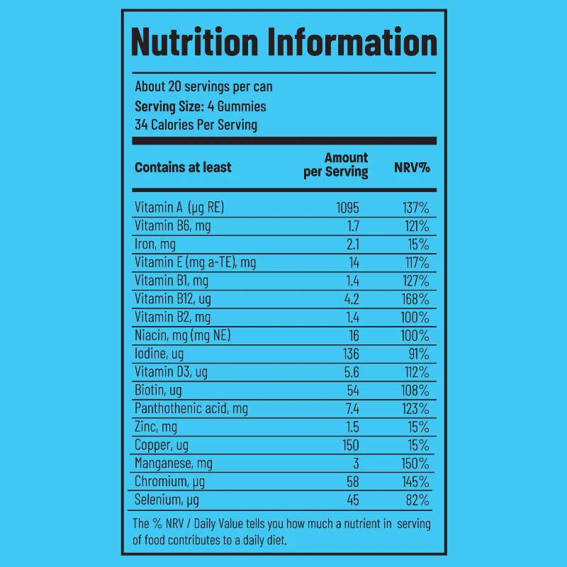 Men’s Multi – vyrams skirti multivitaminų guminukai, praturtinti 17 būtinų vitaminų ir mineralų, skirti kasdien palaikyti energiją, širdies sveikatą, protinę veiklą ir vaisingumą. Pagaminti iš tikrų vaisių, patogūs vartoti ir be kompromisų – kai norisi „viskas viename“ sprendimo paprastai ir skaniai.